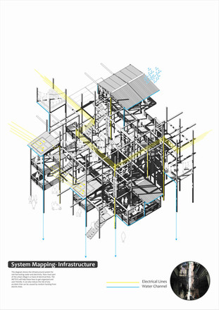 The METSYS (a word derived from the mirror assembly of “system”), an aggregation-based “middle-out” system that challenges the existing power distribution/hierarchy in design and development process in developing contexts. Designing for “developing” context is always challenging. In most cases, the design decisions become entirely top-down, and little or no voice from the subalterns reach the decision-makers. In cases where the development process is somewhat bottom up, that often conflicts with the vision that the policy-makers hold for the future. This problem becomes even more complex in situations where such projects involve the stakes of multiples parties with different levels of affluence, power, and education. The Urban Villages in Shenzhen is one such context which is, to the rest of the city, an opaque box - very little to explore or preserve. Many of the villages has been demolished to keep pace with the modernist development process going on in the city of Shenzhen after the economic boom. Villagers want to protect the villages form demolition but fail to boldly represent the cultural values, ethnic knowledge, and local expertise that these villages possess, to the rest of the city. In this adversarial context, the objective of our proposal is to increase the porosity of the Urban Village so that the city can experience the richness of the culture, foods, and the vibrant lifestyle of the villagers, and thus understands the values of a balanced and sustainable development. We are providing the villagers with tools, techniques, and policies so that they can develop an entirely bottom-up system of generating spaces, programs, multi-use zoning, or complex street life in the Urban Village. The adaptable, flexible METSYS will not only preserve the natural order of the village life and culture formed by its residents, but also will ensure the overall economic sustainability of the locals.